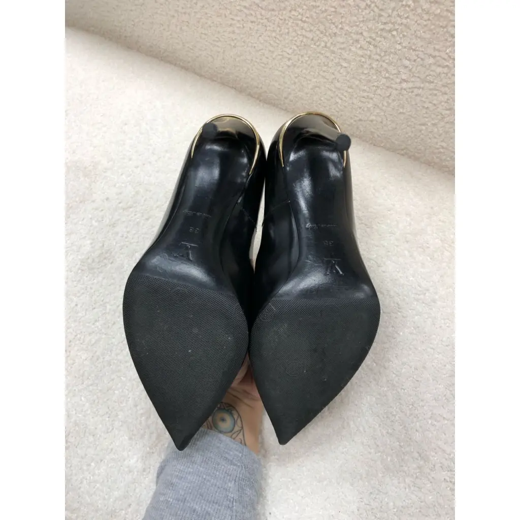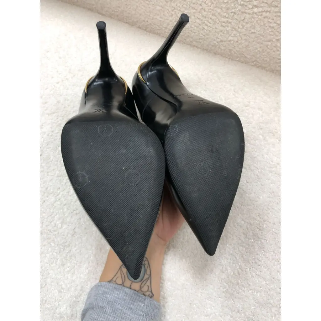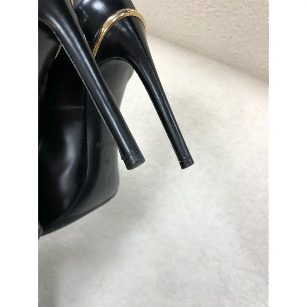 Изысканные классические лодочки Louis Vuitton — воплощение французской элегантности и утончённого стиля. Модель выполнена из гладкой чёрной кожи с заострённым мыском и высоким тонким каблуком, украшенным деликатной золотистой вставкой с логотипом