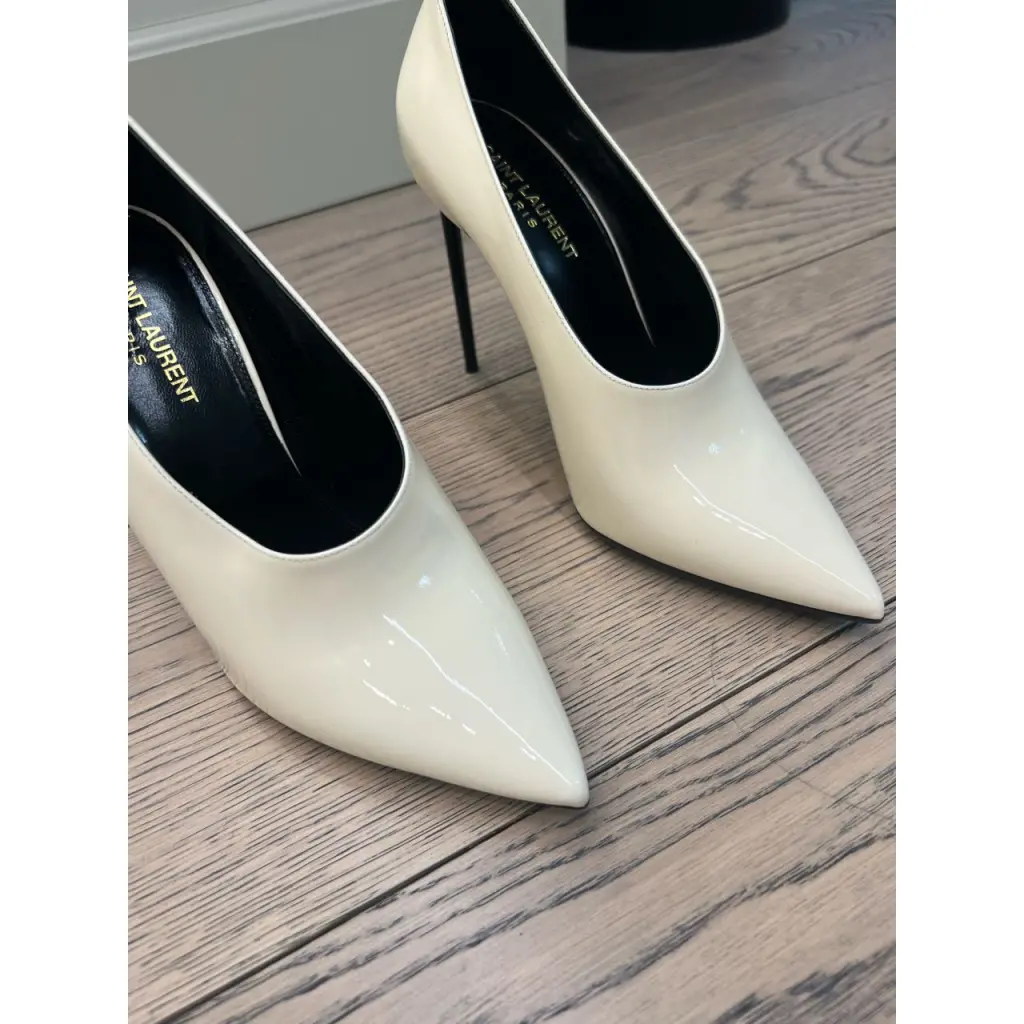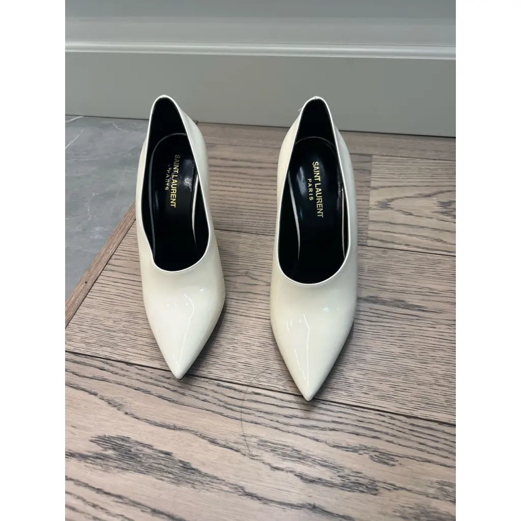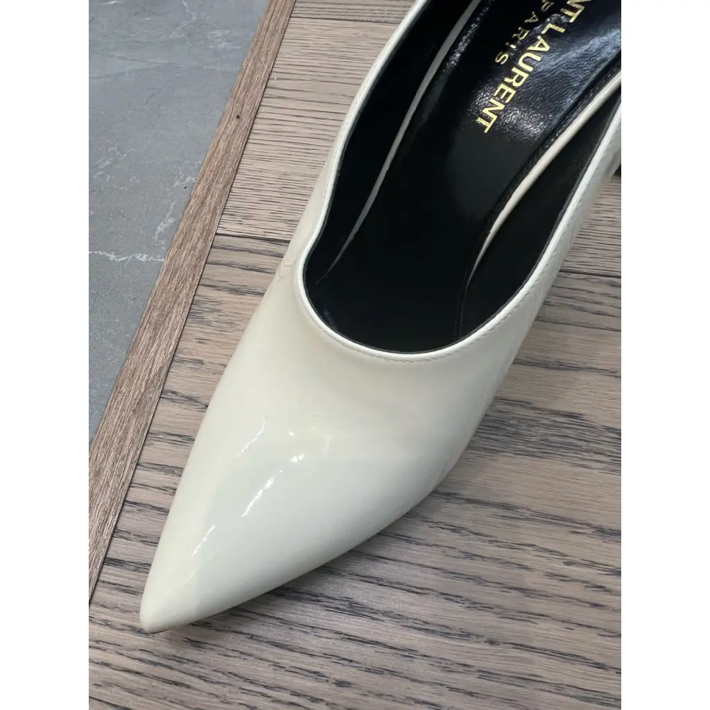SAINT LAURENT Бежевые туфли из лакированной кожи