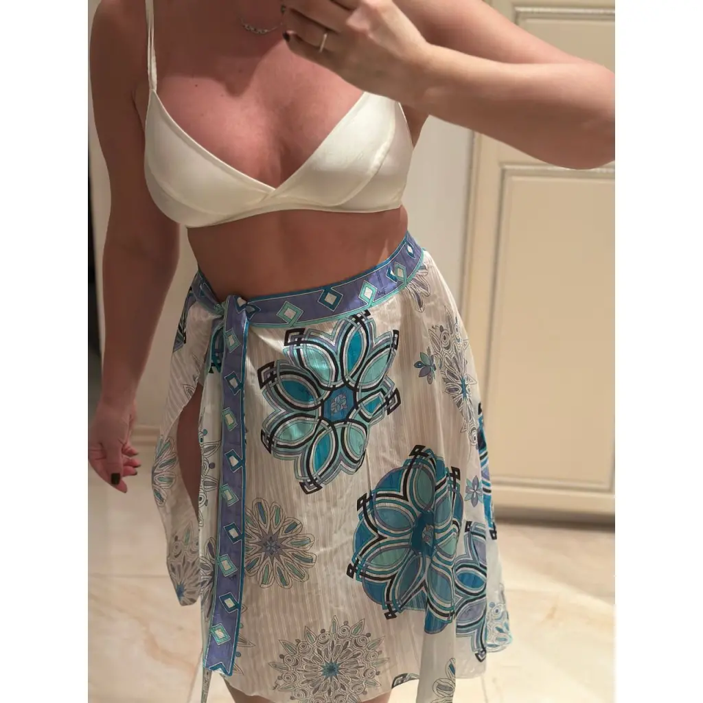 Пляжная туника, завязывается на шее получается сарафан, можно на талии как юбку завязать, нежная тонкая ткань хлопок- шелк в составе.
