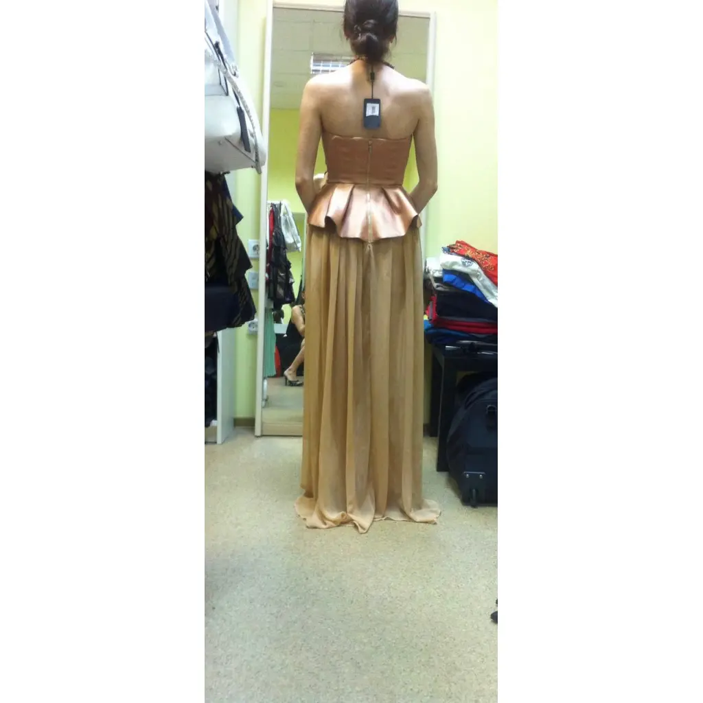 Бежевое полиэстеровое вечернее платье