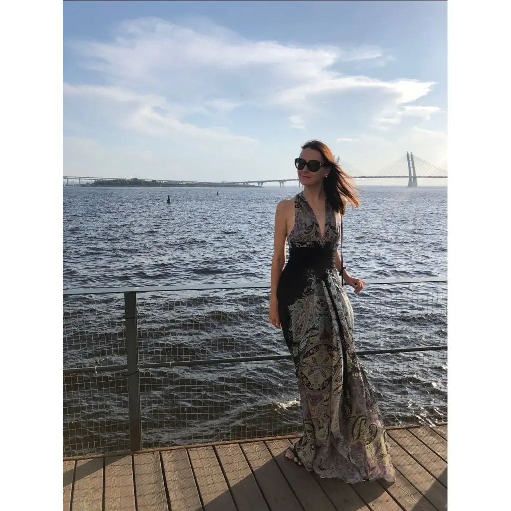 Роскошное длинное шёлковое платье Etro по всей длине подкладка, скрытая боковая молния длина платья 160 см пот 34 см пройма 31 см Размер по бирке 42, идёт на S