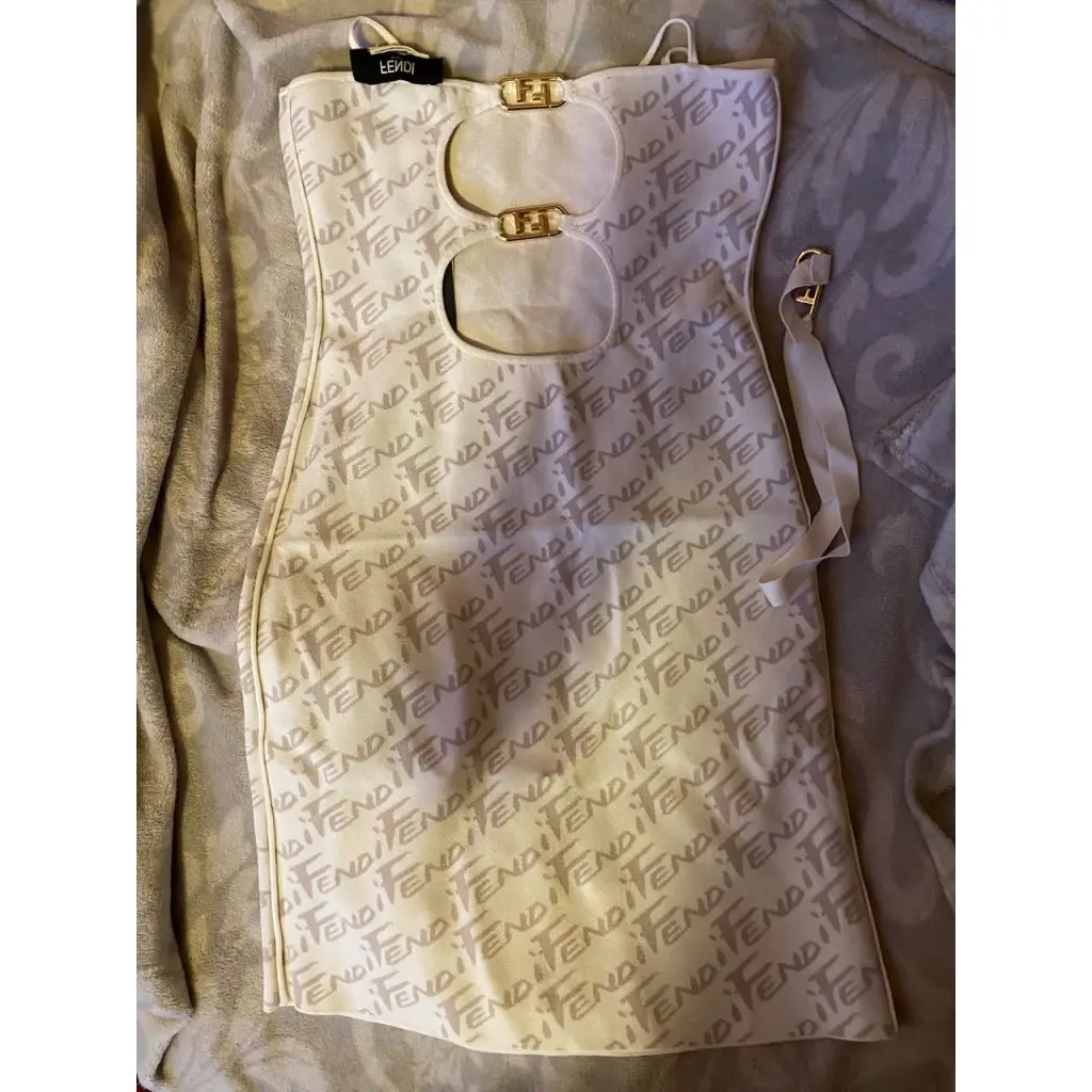FENDI Бежевое атласное вечернее платье