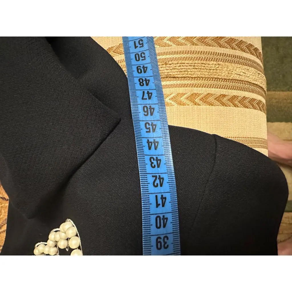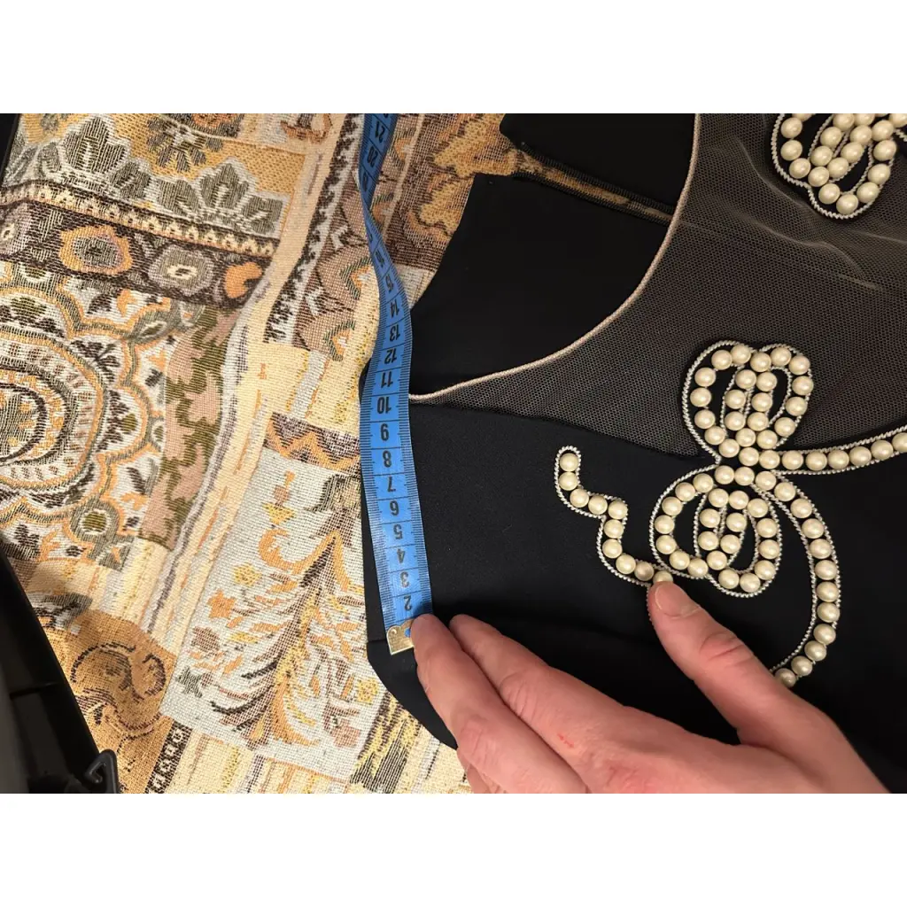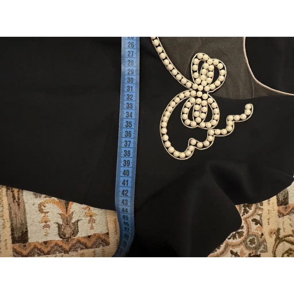 — Черное платье-карандаш из смеси шерсти и шелка с украшением из искусственного жемчуга