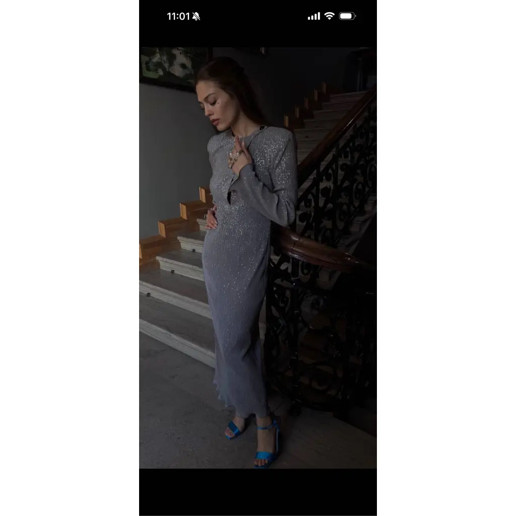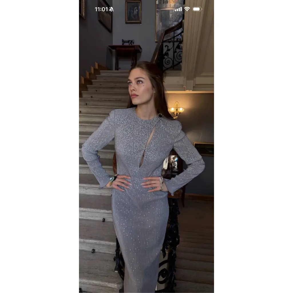 GIORGIO ARMANI Серебряное шерстяное вечернее платье