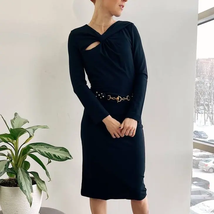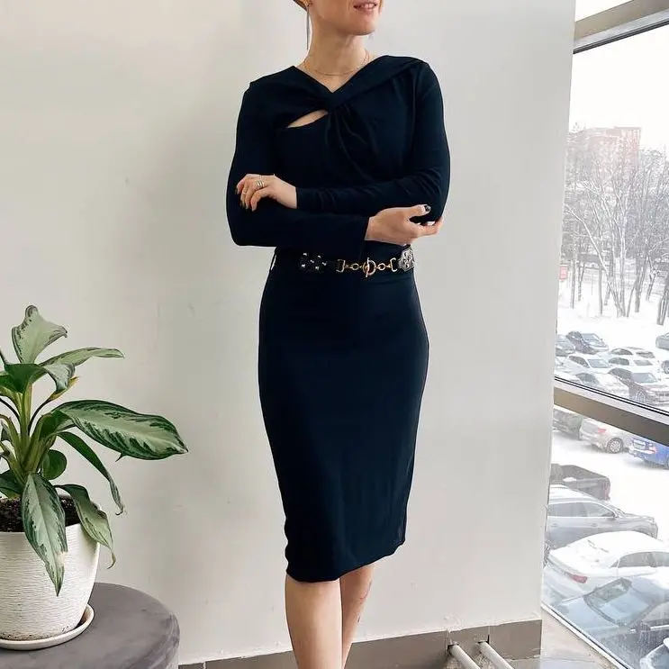 Платье темно-синего цвета с длинными рукавами и интересным воротом с вырезом, сзади застегивается на молнию, пояс съемный. Почти винтаж, коллекция 2013 года) Новое, с биркой.