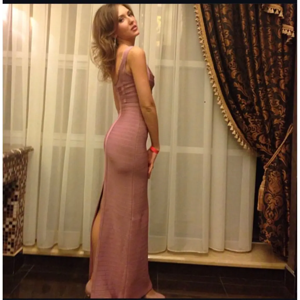 HERVE LEGER Розовое хлопко-эластановое вечернее платье