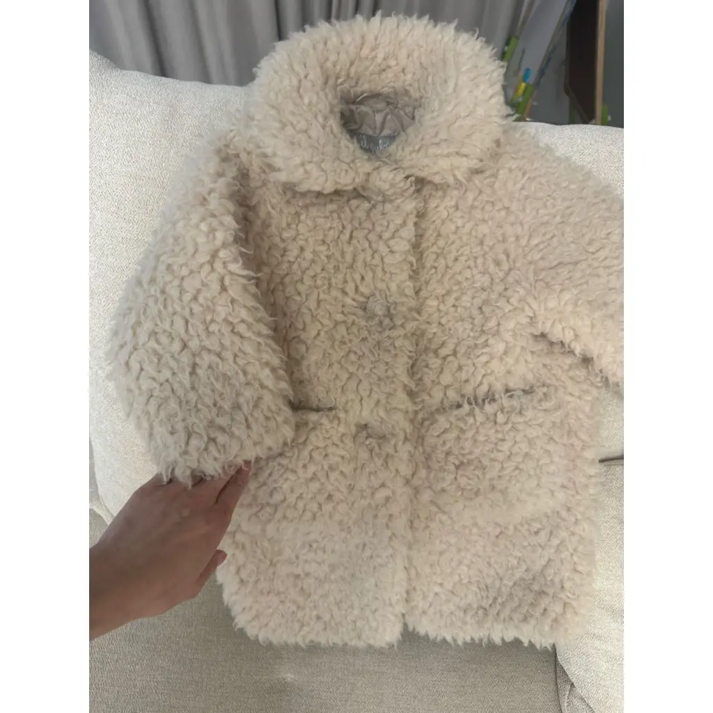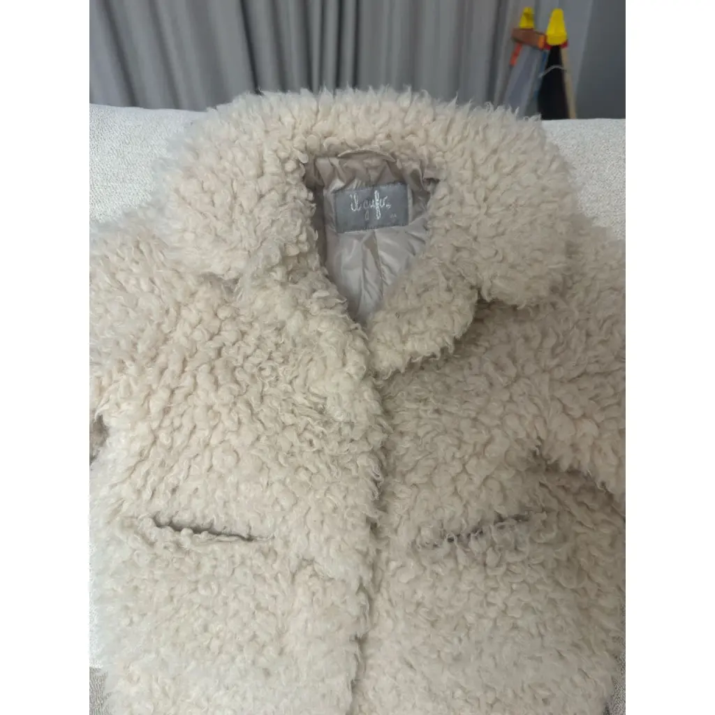 Модное пальто бренда Il Gufo -Чебурашка нежного кремового оттенка выручит в прохладную погоду межсезонья. Модель с двумя накладными карманами сшили из мягкого легкого экомеха, напоминающего густую овчину с вьющимся руном.