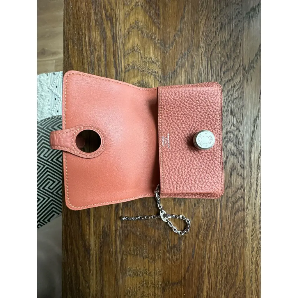 HERMES Коралловая кожаная визитница