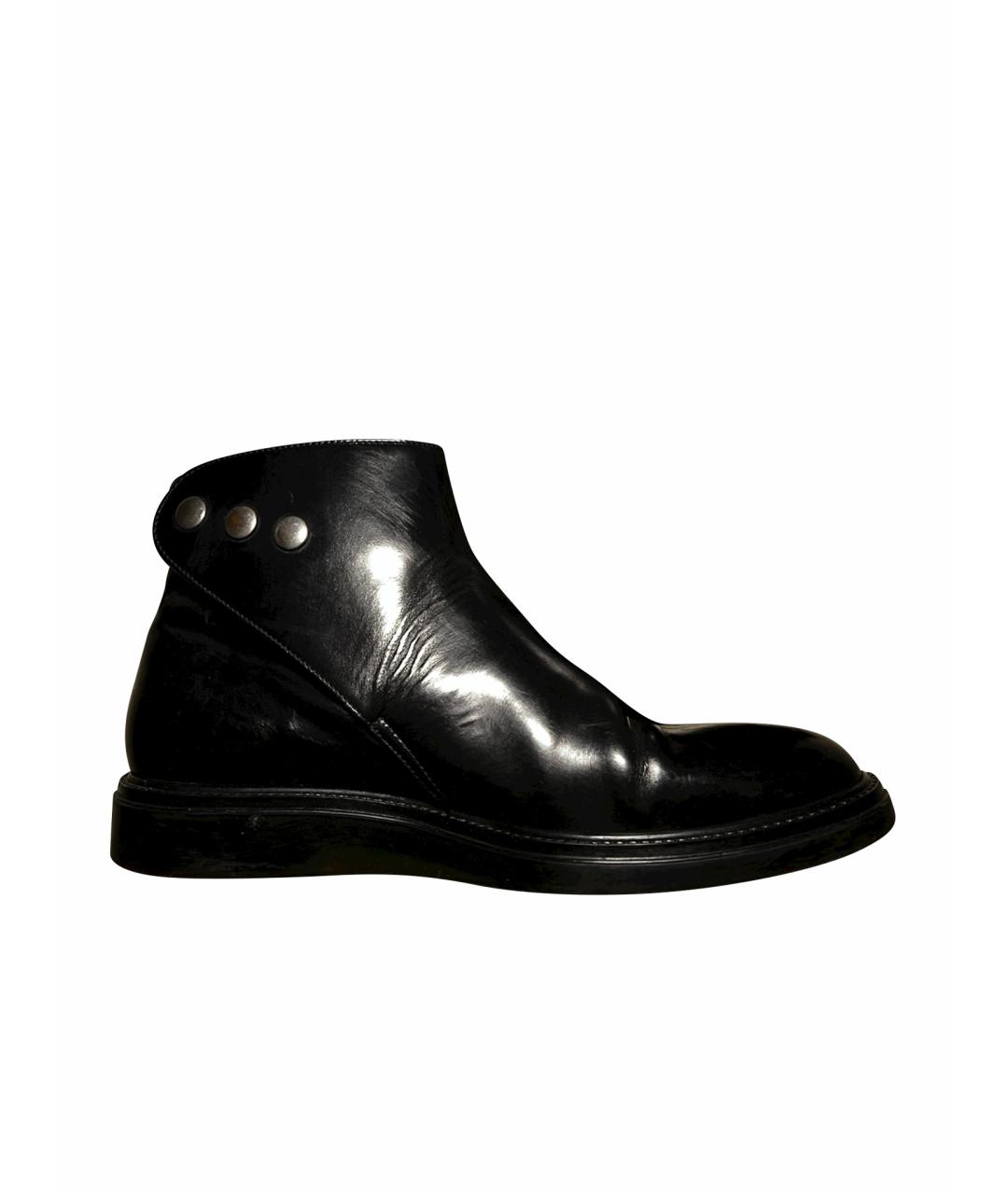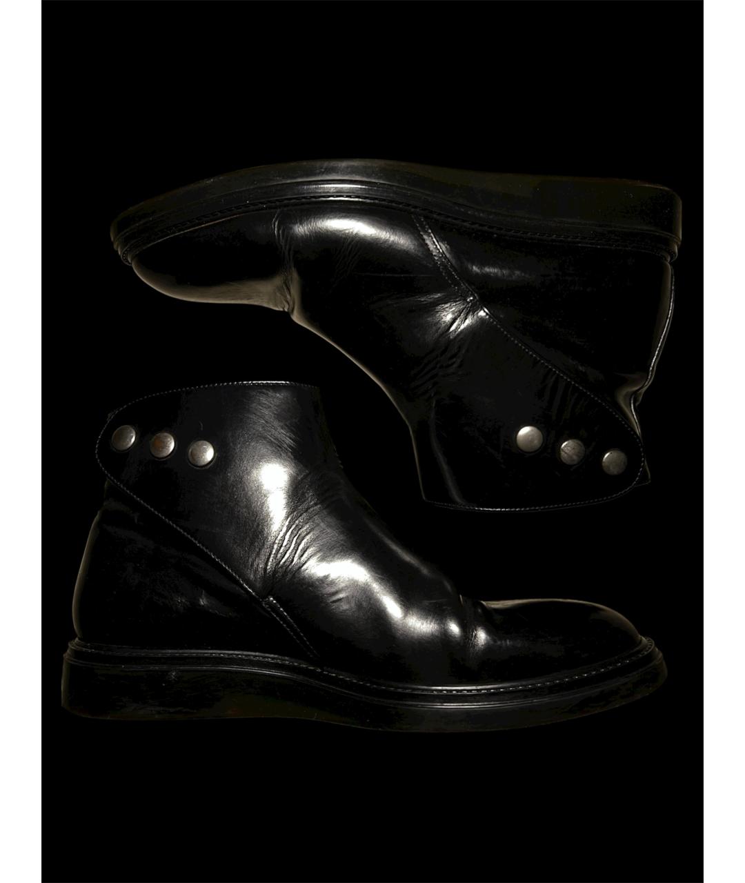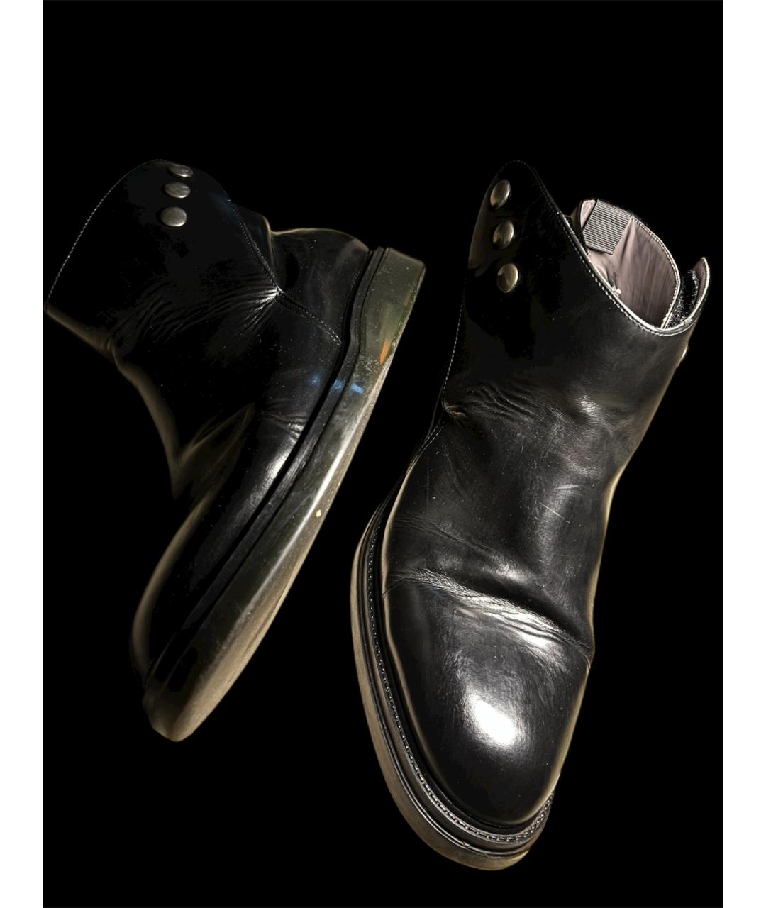 Полуботинки/полусапоги Чёрная лакированная кожа Крылья с металлическими клепками на липучках Вся подошва залита смолой Очень футуристичный дизайн Отличное состояние (естественные заломы на коже от носки, добавляющие вайба)
