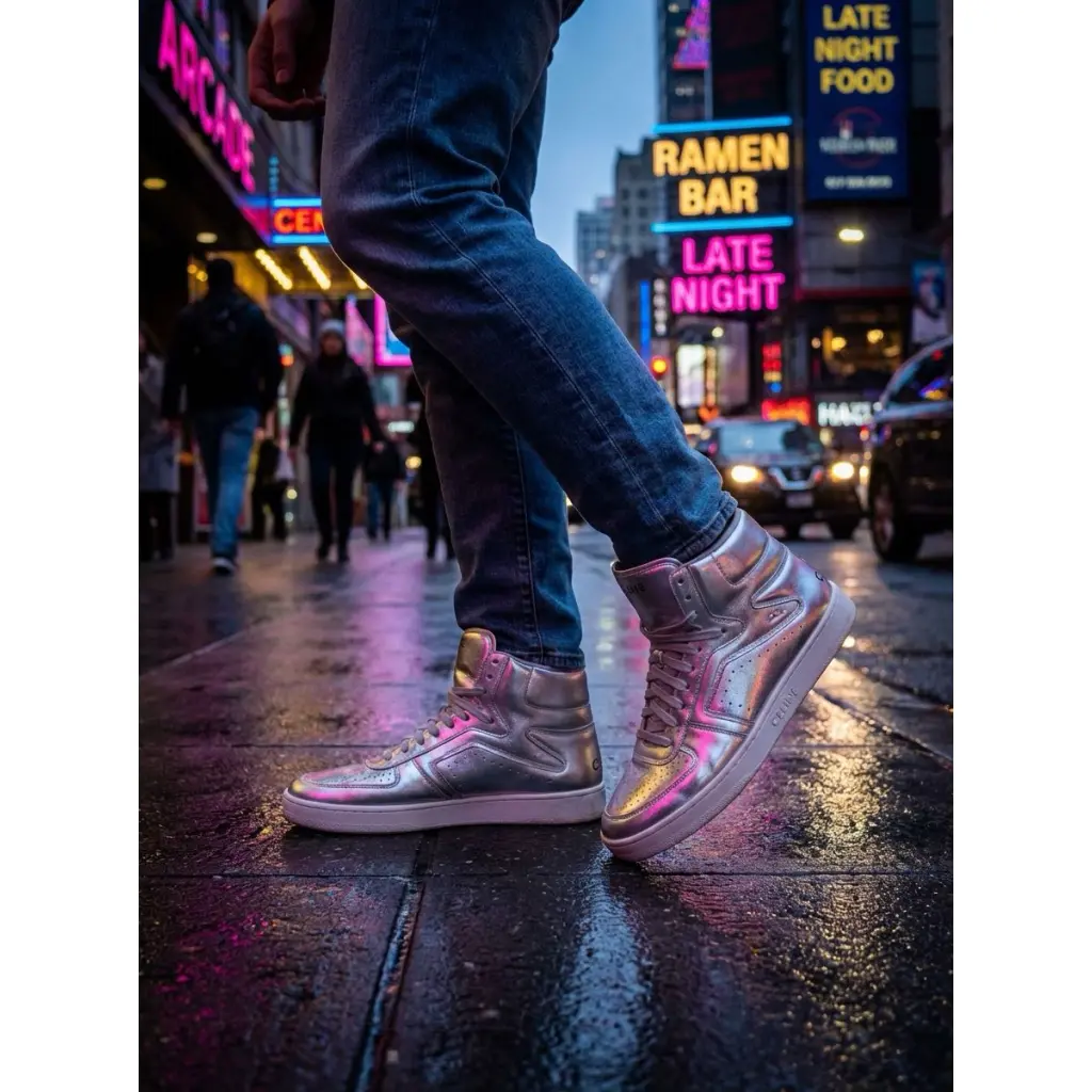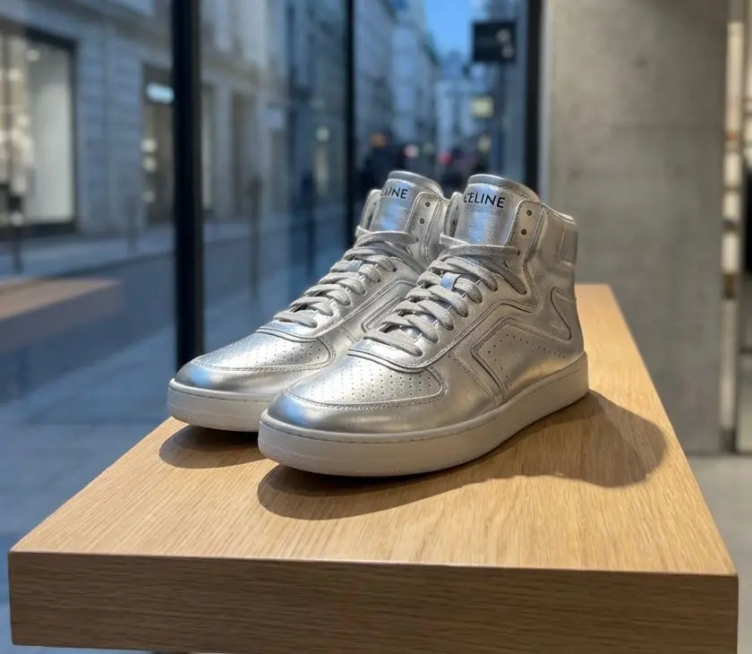 В весенне-летней коллекции Эди Слиман создал высокие кеды Z Trainer. Прочная металлизированная кожа серебристого цвета помогает модели стать ключевым объектом в образе, но в то же время не отвлекает от дизайна, вдохновленного баскетбольной обувью из 1980-х и 1990-х