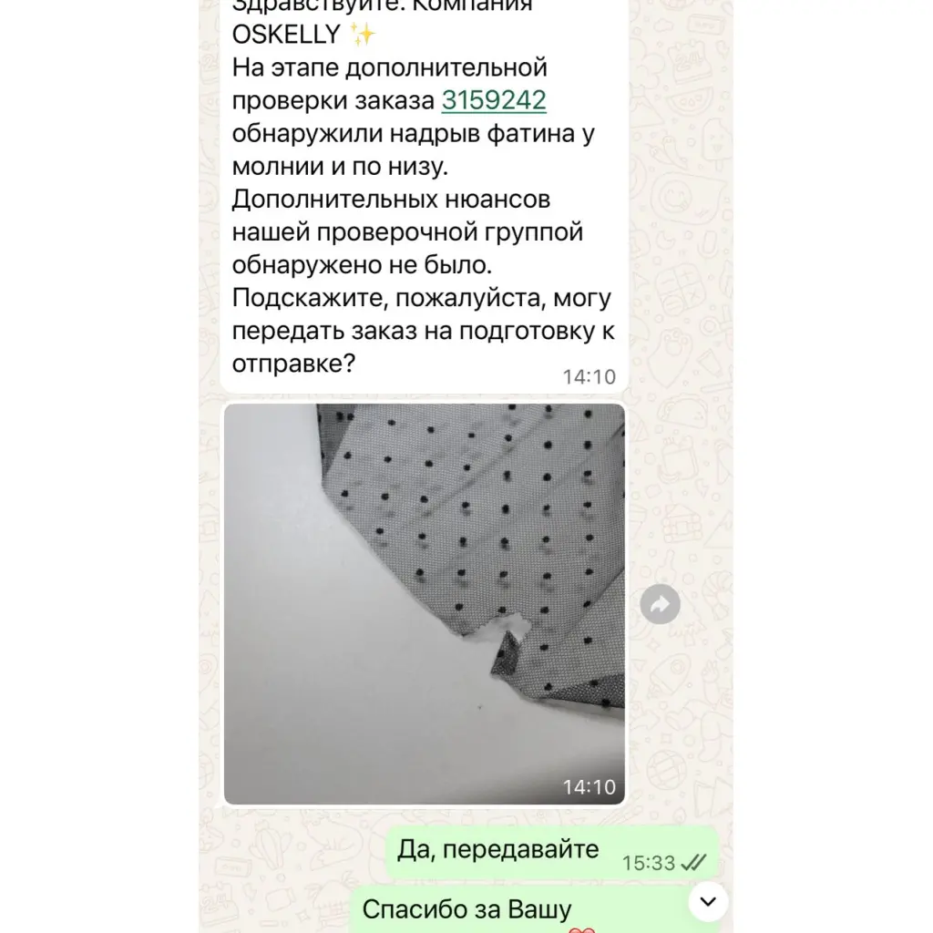 Есть проблема с подолом. Не заметно, но есть. Сейчас не дома, попробую найти сообщение от сервиса Оскели, когда я её покупала….