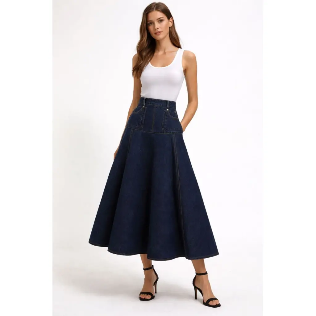 Джинсовая юбка, подчеркивает талию