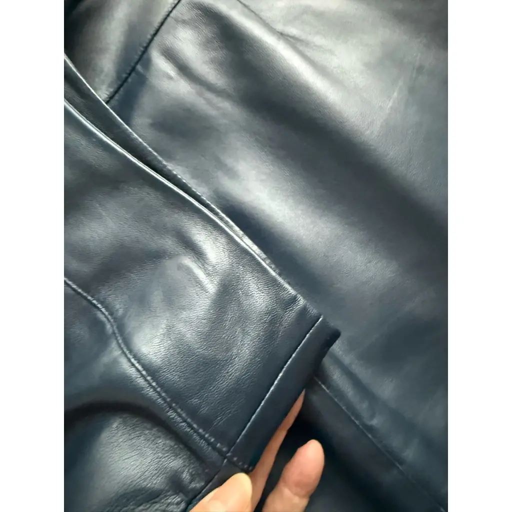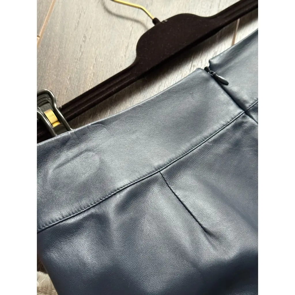 LORO PIANA🔥 Кожаная темно-синяя юбка миди с разрезами и карманами. Разрезы на кнопках с логотипами Размер 44 ит Ширина в поясе 42 см, в бедрах 52 см, длина 75 см