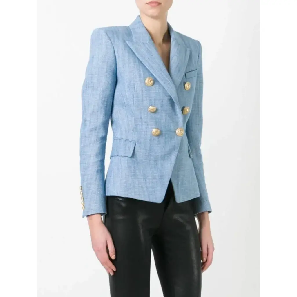 BALMAIN Голубой твидовый жакет/пиджак