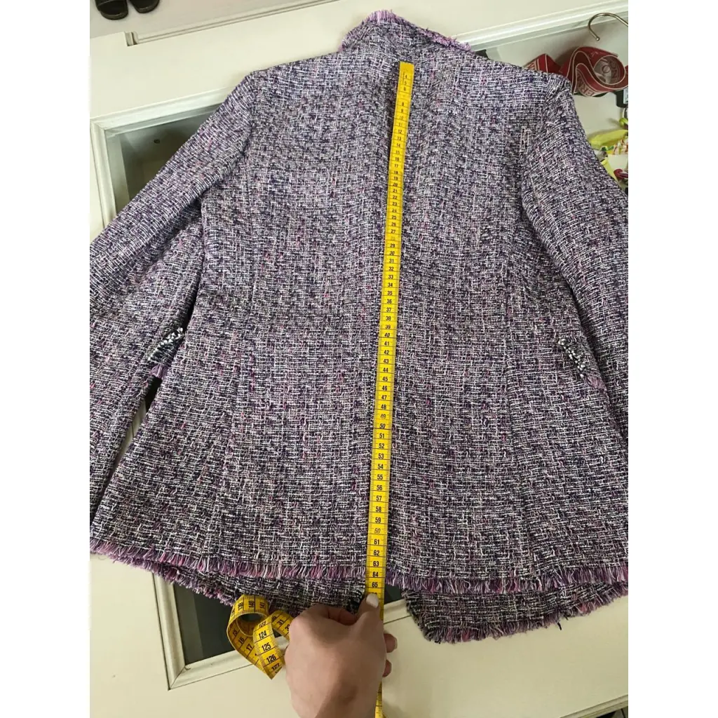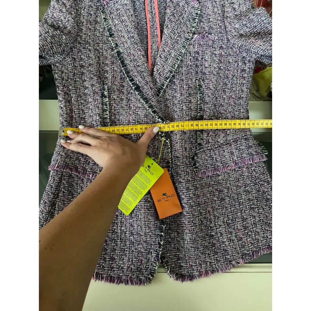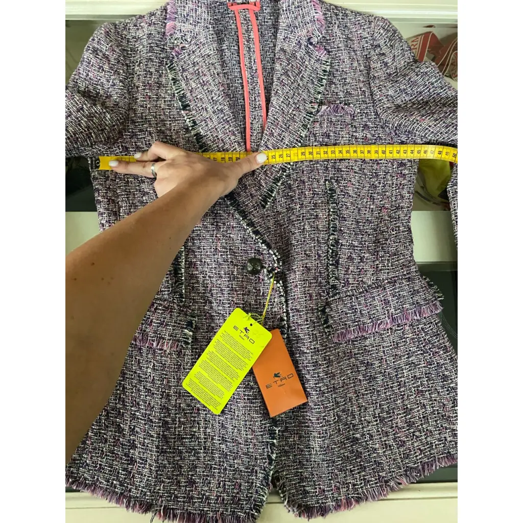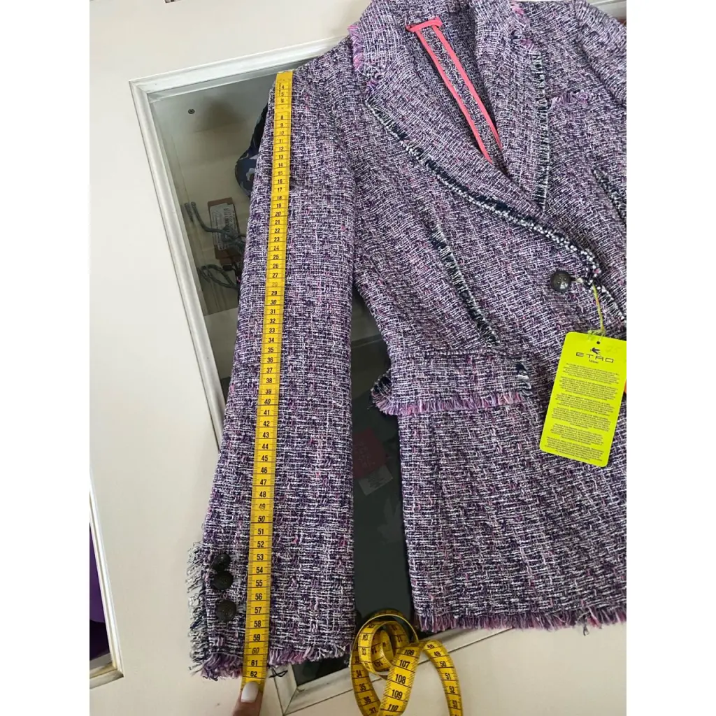 Фиолетовый твидовый пиджак из смеси хлопка, шелка и льна от ETRO (Этро).