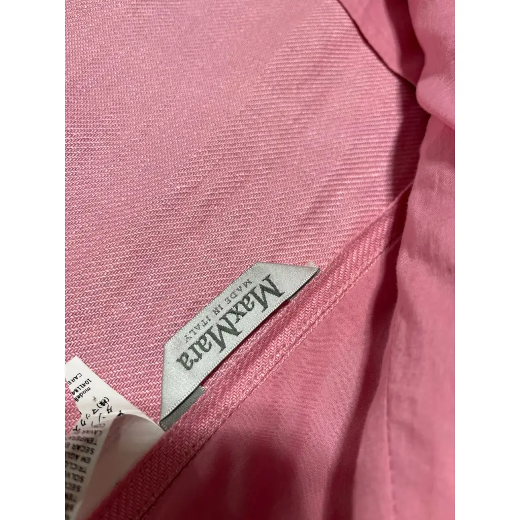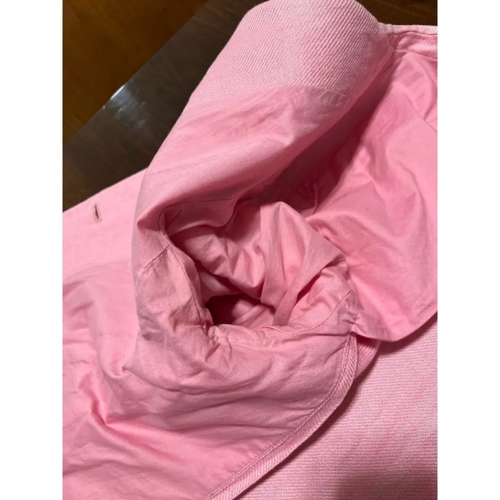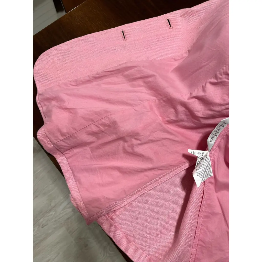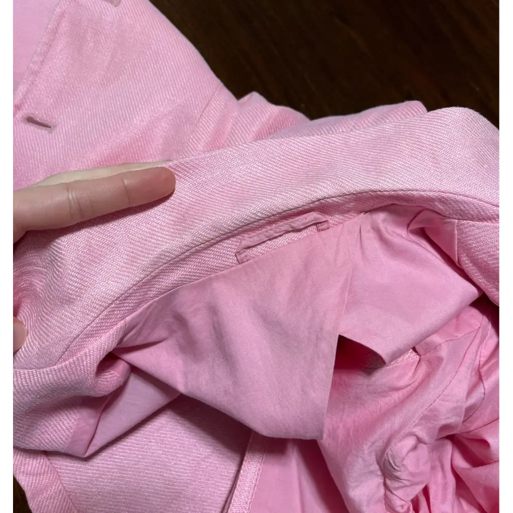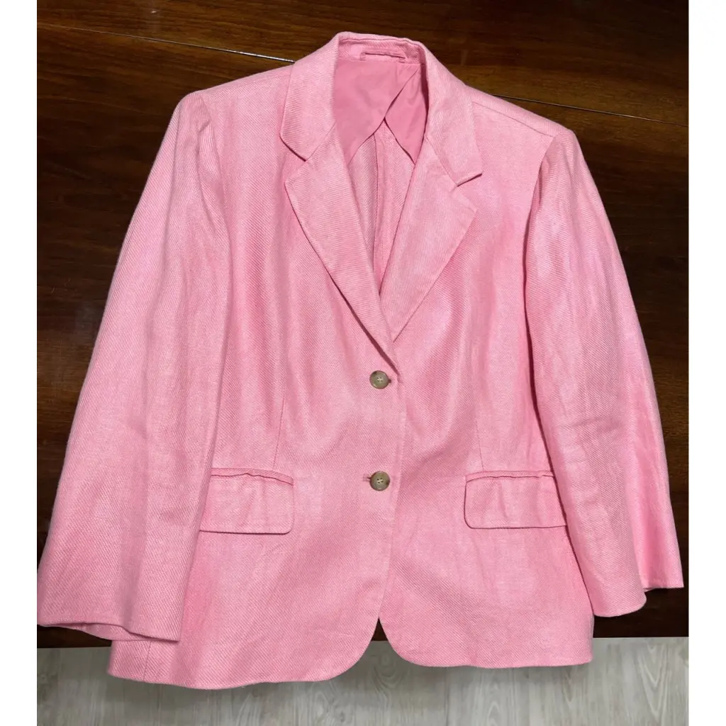 Женский жакет в розовом цвете. Бирочка повредилась на половину и состав не известен. По ощущениям это хлопок, лен и шелк. Отличный вариант на теплое время года.