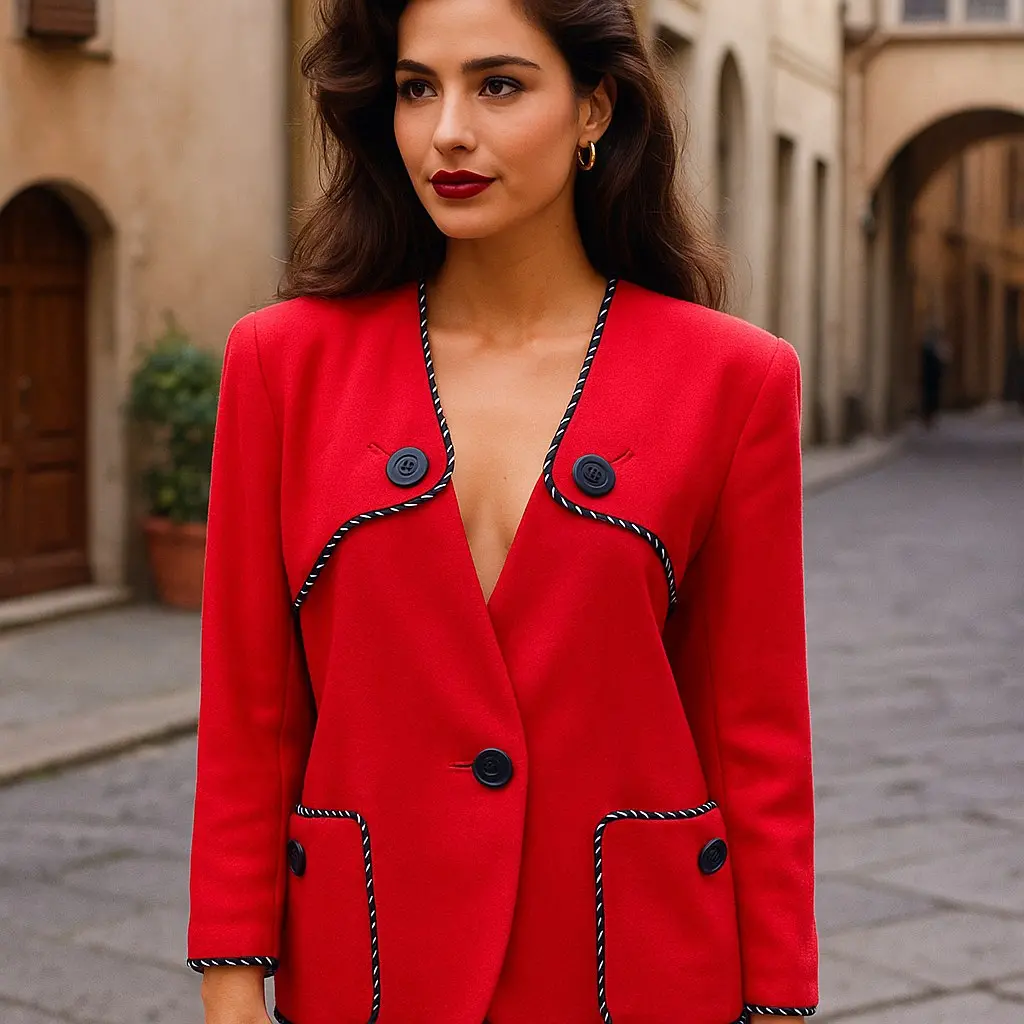 Yves Saint Laurent YSL Vintage Wool Red Blazer / Jacket with Contrast Trim