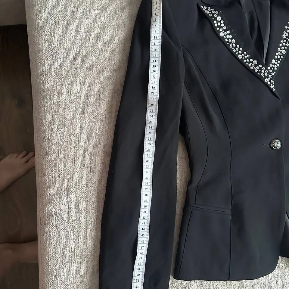 Пиджак Versace Jeans Couture. брюки расклешенные с самого верха, состояние нового, выходил один раз. Приталенный, сидит идеально! Одна пуговица, отделка камнями. 100% шелк.