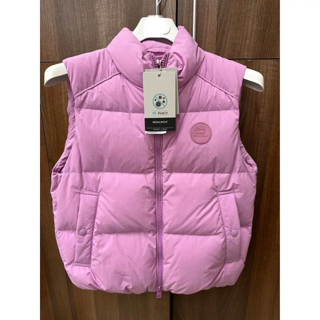-Розовый стеганый жилет с натуральным пуховым наполнителем от WOOLRICH.