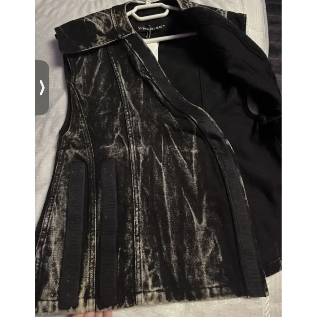 Новый джинсовый жилет трансформер! Очень стильно смотрится! Весь на липучках, можно по разному застегивать