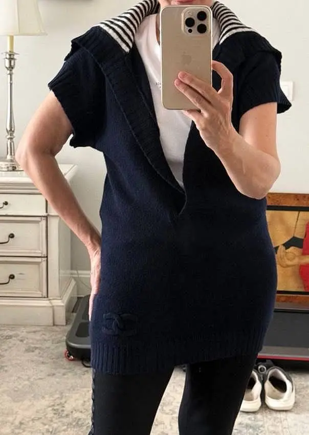 CHANEL 🔥 Кашемировый удлиненный жилет, темно-синий Размер 38 фр Ширина 46-50, длина 74 Отличное состояние, все этикетки на месте. Носить на футболки, рубашки, лонгсливы.